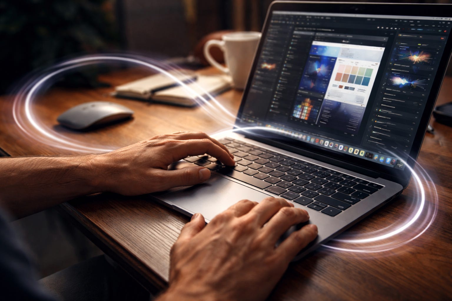 It baffles me that anyone doing serious creative work on a computer still reaches for a mouse. I can’t imagine working on anything that isn’t a laptop at this point, even at a desk. The reason is simple: with a trackpad, my hands never move more than a few inches from the keyboard. Everything stays in one tight zone. That proximity is everything. It means I’m never breaking flow to think about the tool; I’m just thinking about the work.